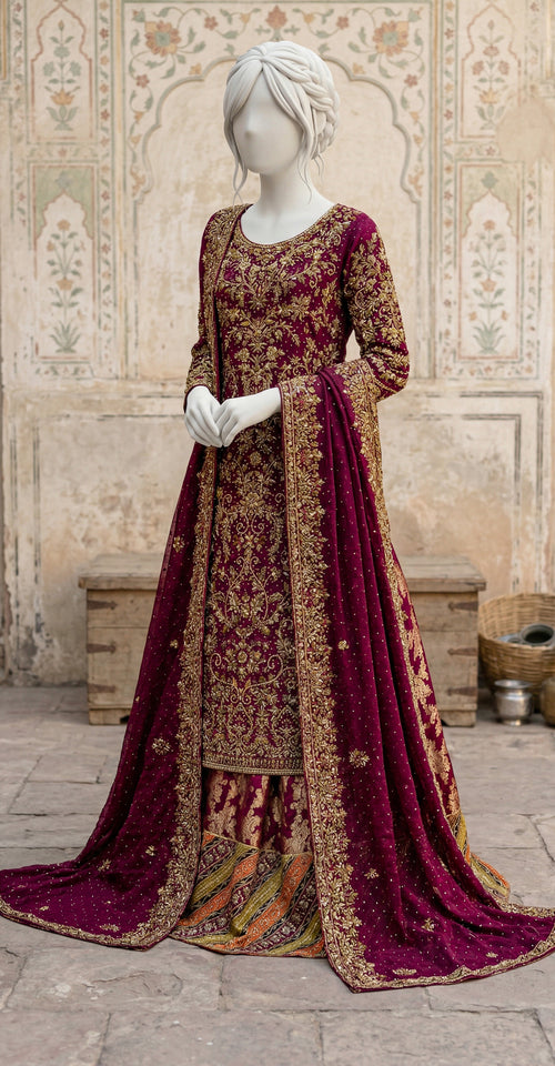 The Angrakha is a traditional South Asian garment that traces its roots back to the royal courts of Rajasthan and the Mughal era. Known for its distinctive overlapping front panels that tie at the side, the Angrakha was historically worn by royalty and nobles. Its graceful silhouette and intricate craftsmanship represent a blend of heritage, elegance, and timeless cultural style, making it a beloved choice in both classic and modern fashion.